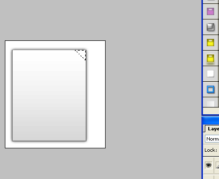 Most a levágott sarkú téglalap layer-én, kattintsunk jobb gombal és válasszuk ki a copy layer style opciót. Válasszuk ki a sarok layerét és jobb gombbal kattintva válasszuk ki a paste layer style opciót.
