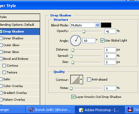 Ha ezzel megvagyunk akkor a drop shadow menüpontban adjunk árnyékot is a téglalapnak: