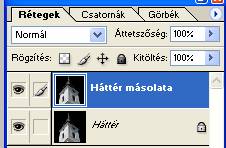 És ezután a fölső, vagyis a „háttér másolata” rétegen dolgozunk:
