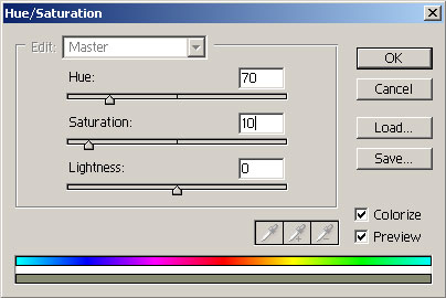9) A szürkéről az IMAGE / ADJUSTMENTS / HUE/SATURATION (CTRL+U) -al állítsd át a színét.