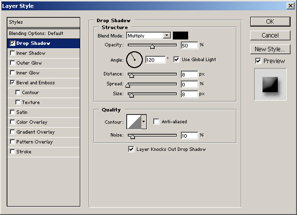 12) Ha majdan szeretnénk formálni a képet, akkor már most be lehet neki állítani pl egy árnyékot;) LAYER / LAYER STYLE / DROP SHADOW