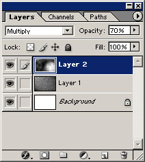 8) A Rétegeknél a felhős réteget állítsd át MULTIPLY-ra, az OPACITY-t pedig 70%-ra.