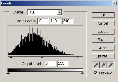 10) Majd az árnyalatát/kontrasztját is állítsd át. IMAGE / ADJUSTMENTS / LEVELS (CTRL+L)