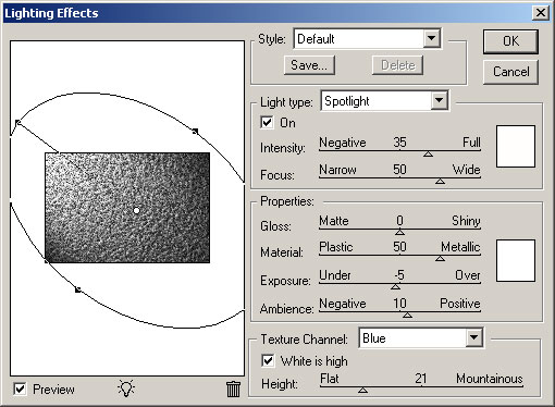 4) A térhatás érdekében használd a fény effektet. FILTER / RENDER / LIGHTING EFFECTS.