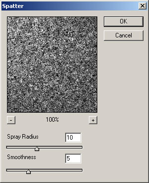 5) A SPATTER filterrel egy kicsit „megrágottá” kell tenni a képet. FILTER / BRUSH STROKES / SPATTER.