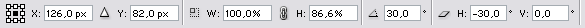 3. Az alsó rétegen állva, Edit -> Free Transform, majd az Option Bar-t állítsd be így: