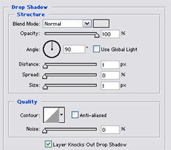 7.) Még mindig a fekete négyzetet tartalmazó layer-en állva alkalmazd a képen látható beállításokat a DROP SHADOW panelen (Layer menü../)
