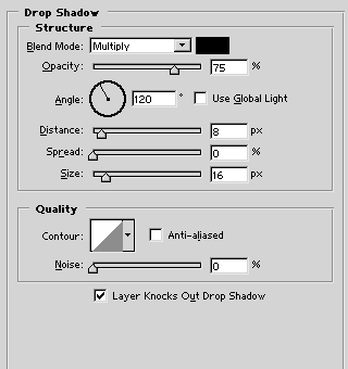 most a progiban menj a „layer styles” menübe, és válaszd ki a „DROP SHADOW” menüpontot. Állítsd be a különböző csúszkákat a képen látható módon. Ha készen vagy, jön a következő lépés, amihez viszont nem kell bezárnod az ablakot!