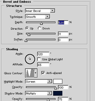 Kattints a „BEVEL & EMBOSS” részre, és megint csak állítsd be a fentebb látható módon az opciókat. Ez kicsit elsimítja az éleket, és ad egy plusz dimenzió hatást a szövegnek. Ha ezzel is kész vagy, jön a következő lépés, de még mindig nem kell bezárni a „layer style” ablakot. :)
