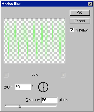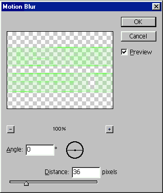 7.) Válaszd ki az új layer t és menj a FILTER / BLUR / MOTION BLUR és használd az itt látható beállításokat: