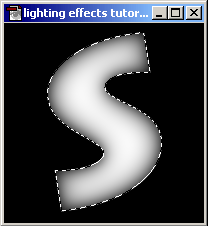 1.) Hozz létre egy új új képet (FILE / NEW IMAGE), méretét állítsd 200×200 pixelre. Válasz ki egy területet, vagy írj be egy betűt (mint a képen is látható pl. egy „S”-t). lényeg hogy ne legyen túl vékony vagy keskeny, különben nem lesz szép. Ha megvan a kiválasztott alakzat, töltsd ki 1 színnel. Ha szöveget választottál, akkor a FOREGROUND COLOR színét kapja meg egyből.