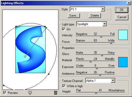 Először állítsd át a TEXTURE CHANNEL értékét Alpha 1-re. Innentől kezdve az ízlésedre van bízva, mennyi fényt, milyen irányból stb.. akarsz. Próbálgasd végig mi-mit csinál, milyen hatásokat lehet elérni a különböző beállításokkal. Ha pontosan a képen látható hatást szeretnéd elérni, kattints a 4. képre.
