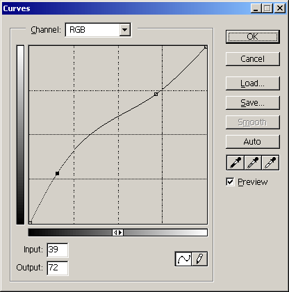 7.) Végül, de nem utolsó sorban nyomj egy CTRL+M -t, erre feljön a CURVES ablaka. Itt egy ide-oda csúsztatható vonalat fogsz találni, ezzel kísérletezz kicsit, érdekes hatásokat lehet kihozni a képből.. :) Ha pont a képen látható hatást akarod te is elérni, a részletesebb beállításokat tartalmazó illusztrációért kattints a képre.