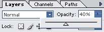 Nyomjunk [OK]-ot, majd ugyanezen a rétegen [Layer] maradva, az [Opacity] értéket állítsuk 40%-ra, és mellette pedig az [Overlay]-t jelöljük ki a listából.