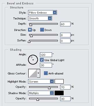Van még egy apró munka vele. A rácsokat meg a színes mintát kellene egy kicsit domborítani, és valahogy életszerűbbé tenni. Ehhez kattintsunk a rácsnak a rétegére az egér jobb gombjával, és válasszuk a [Blanding Options…] menüt. A megjelenő ablakban állítsuk be a következőket: