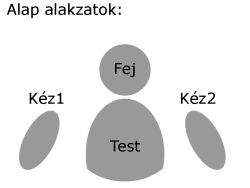 Ahogy az a lenti képen is látható 4db alakzatot kell összerakni (1. kép). Két kezet, egy törzset, és egy fejet. Ezeket készítsük el külön-külön rétegekre, és töltsük ki valamilyen színnel. Legfelül legyen a fej, alatta a törzs, és legalul a két kéz rétege.
