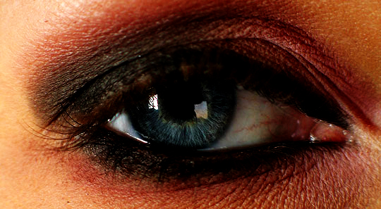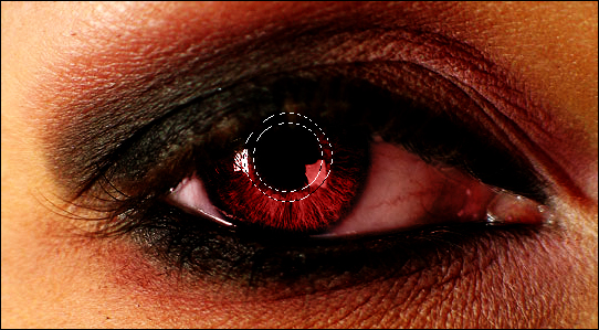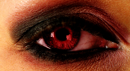 5. Lépés: Csináljunk egy új Layert és állítsuk a Blend módot Colorra. Válasszuk ki az ecsetet és fessük ki az íriszt (#9b0f0f).