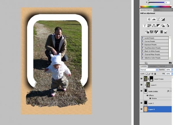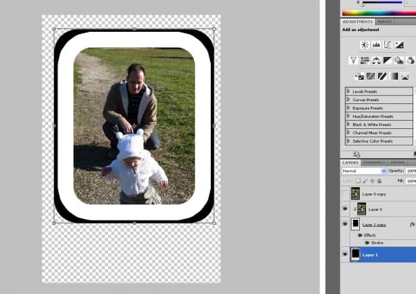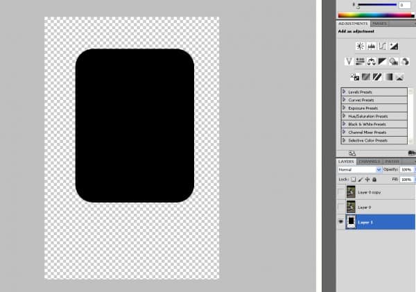 Készítsük el a keretet. A fekete téglalapot kétszerezzük meg, CTRL+J kombináció.