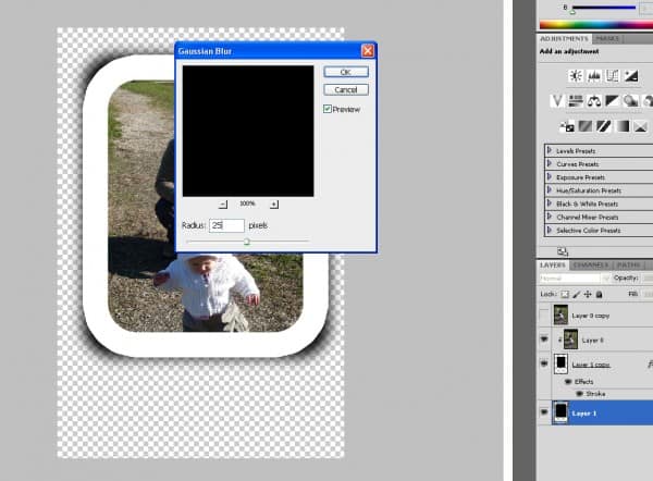 A kerekített téglalap alakú eszközzel ( Rounded Rectangle Tool ) rajzoljuk meg a keretet az üres rétegben. Én a kerekítésnek ( Radius ) 140 pixelt adtam.