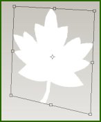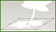 Egyetlen lépés maradt, árnyékot készítünk a levélnek. Ehhez ugyanarra a technikára lesz szükség mint a kivágásnál: duplázzuk az alak réteget, és a torzítás paranccsal húzzuk le és jobbra a felső peremet, épp a kivágással ellentétes irányba (kép).