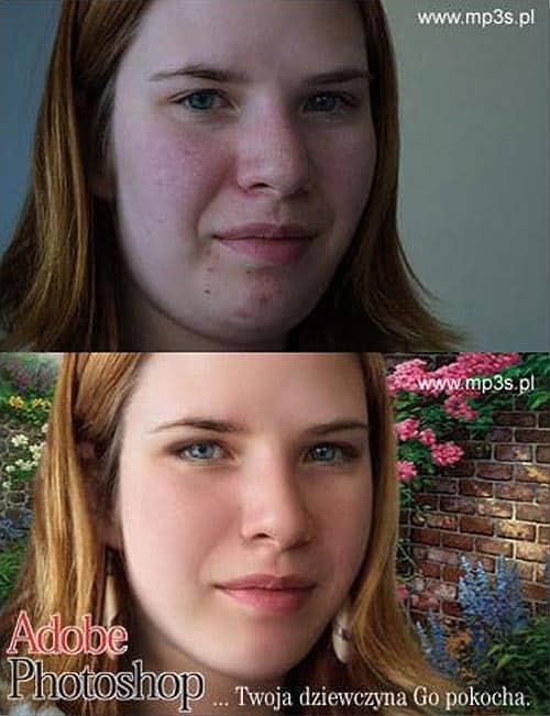 Az első olyan, mint a rejtvények, hogy találja meg a két kép közötti eltérést. Néztem egy darabig, amíg észre nem vettem, hogy a hapsinak leszedték azt a csúnya árnyékot az arcáról. + kiegyenlítették egy kicsit a színeket és a kontrasztot. Na, ez lenne az optimális felhasználása a Photoshopnak.