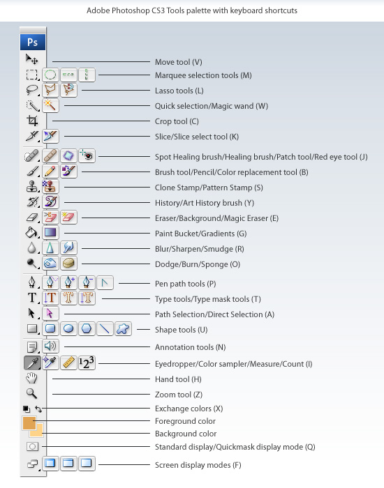 Forrás: Adobe Photoshop CS3 Tools palette with keyboard shortcuts