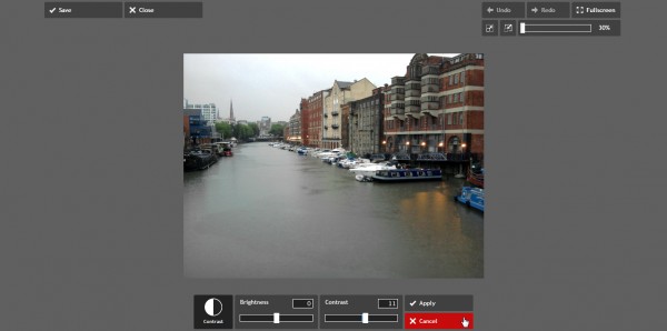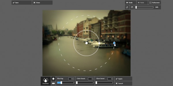 A menüpont kiválasztását követően jónéhány képszerkesztési feladatot hajthatunk végre. Példánkban a kontraszton igazítottunk és a fokális életlenítést próbáltuk ki. Ez utóbbi funkció még a Photoshopban is újdonságnak számit.