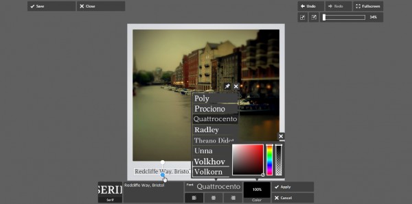 Végül felirattal láthatjuk el a képünket. Ezt a lépést mindenképp érdemes a végére hagyni mivel, ha az Apply gombbal jóváhagytuk a szerkesztést, akkor a továbbiakban már csak a szöveggel együtt szerkeszthetjük a képünket. Természetesen visszavonásra még van lehetőségünk az Undo gomb használatával.