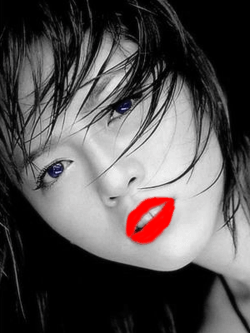 Készítsünk egy újabb layert: most a soft brush 9-es és 5-ös mérete között váltogatva vigyünk az ajkaira egy szolid piros színt: