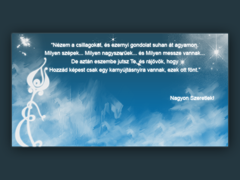 Na már csak a szöveg van hátra és vége! Feltéve ha szükséged van szövegre, mert már így is egy nagyon szép képünk van. Na de ha kell a szöveg, akk olvass tovább ;) Gyerünk!