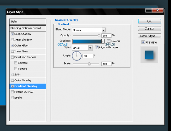Stroke-nál ízlés szerint állítsátok be, azt már rátok bízom, nem lesz nehéz, de ha mégse megy, szívesen segítek, kérdezzetek bátran… ;) Haladjunk is tovább, most a háttér színét kell beállítani, amit a Gradient Overlay-val fogunk megtenni.
