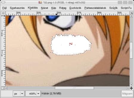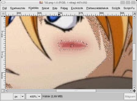 7. Növeljük meg a kijelölést körülbelül 2 nagysággal (Kijelölés -> Növelés).