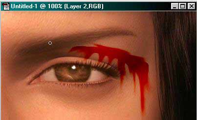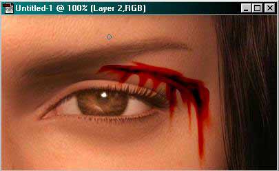 4) A COLOR BURN-nel be tudod sötétíteni a seb belsejét, a SMUDGE TOOL-lal meg el tudod kenni, mintha a festék még nem száradt volna meg a felületen és maszatolható. Az ecsetet célszerű az eredetileg kiválasztott terület kb 1/4 méretére állítani, majd utána nekiesni a képnek.