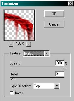 6) Most egy kis mintázatot kell vinni a sebre, ehhez menj a FILTER > TEXTURE > TEXTURIZE menüpontra és használd ugyanazokat a beállításokat, melyet itt is látsz.