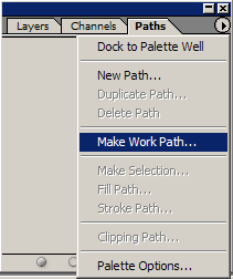 Utánna a PATHS fülre nyomj, és utánna a tölle jobra lév háromszögre:) ott pedig a "MAKE WORK PATH…"