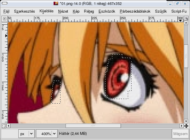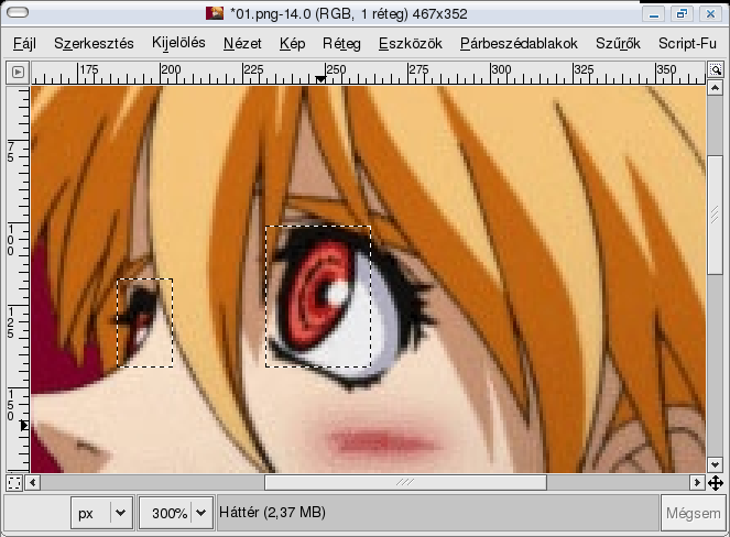 2.) Jelöljük ki a két szemet a „Téglalap kijelölése eszközzel” [R]