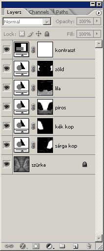 csináltam egy layert(beállítod h multiply legyen) utána kijelöltem az egyik koponyát pen tool-al utána kitöltés amilyen színnel akarod és ezt megcsinálod a többinél is…. persze ezt nem mindig a legjobb alkalmazni mert nem lesznek ilyen szép színek :D