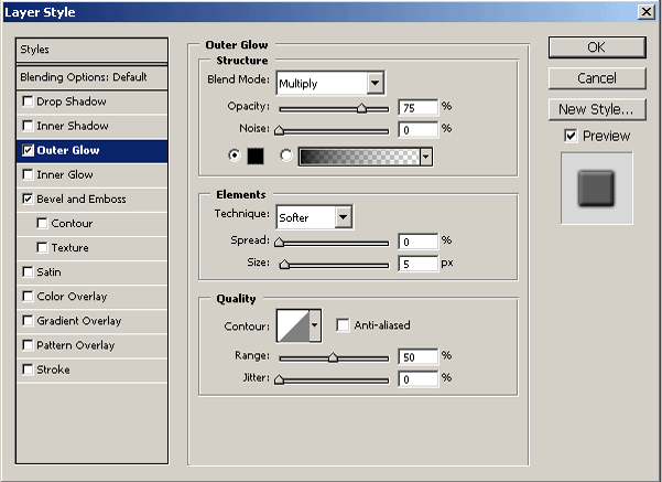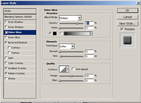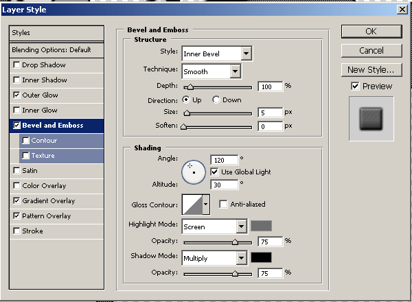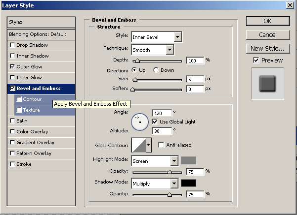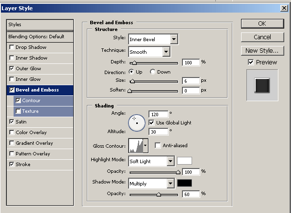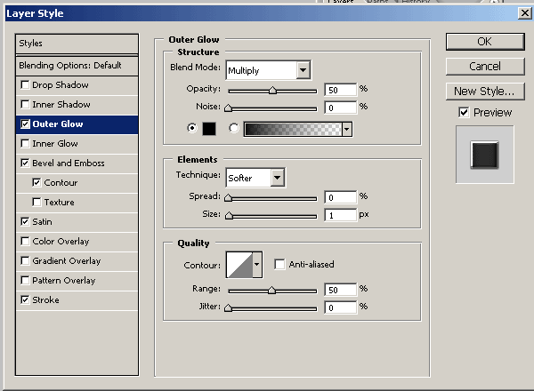 Adjunk a zsinóroknak egy kis „Outer Glow” és „Bevel and Emboss„