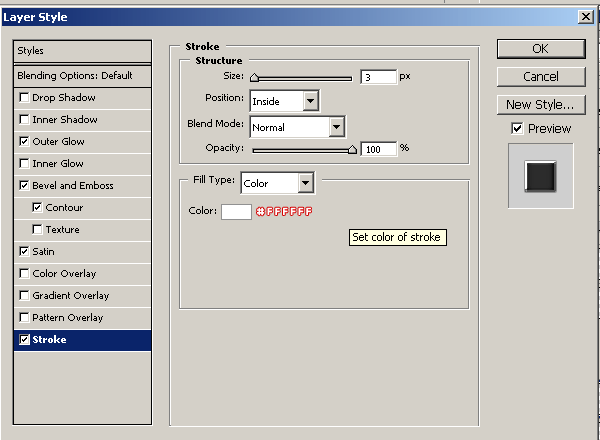 Jobbklikk és Stroke Patch kiválasztod „Brush”. Majd alkalmazzunk a következő Layer Styleokat