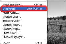Alakítsuk át a képünket fekete-fehérré, a Desaturate segítségével. Image>Adjustments>Desaturate), vagy Shift+Ctrl+ U.