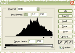 Most pedig Ctrl+L, vagyis Image/Adjustment/Levels. Valami ilyesmi beállításokkal:
