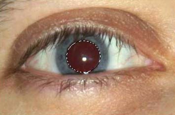 1.) Nyissuk meg képünket „FILE > OPEN” (CTRL+O) jelöljük ki a pupillánkat teljes egészében. Használjuk a kijelöléshez a „ELIPTICAL MARQUEE TOOL”-t (M)