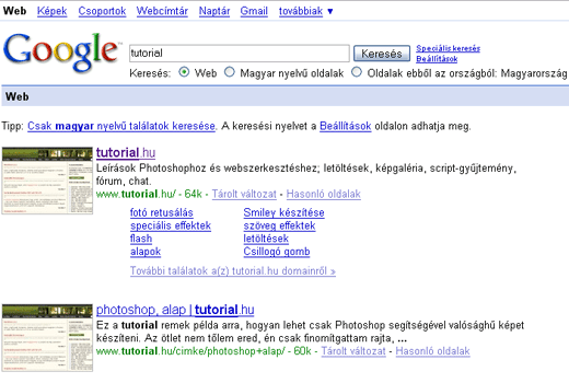Nálam csak az első találat a tutorial.hu, a második már a tutorial.lap.hu :?.