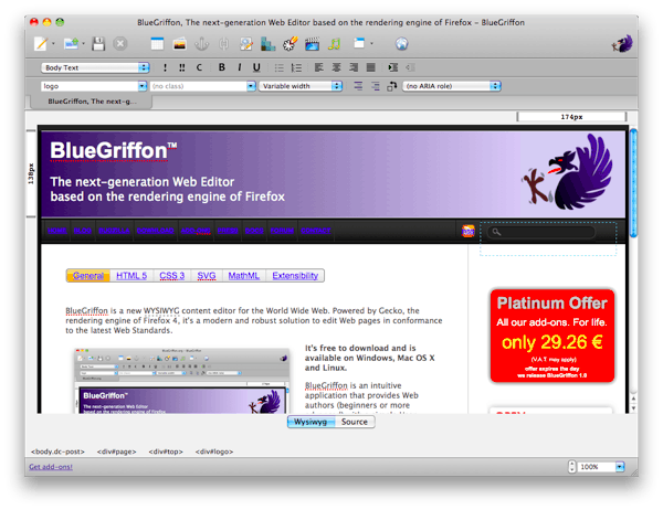 Megjelent egy új WYSIWYG szerkesztő BlueGriffon néven, amit azzal reklámoznak hogy a Firefox 4 motorját (Gecko) használja, robosztus és modern.