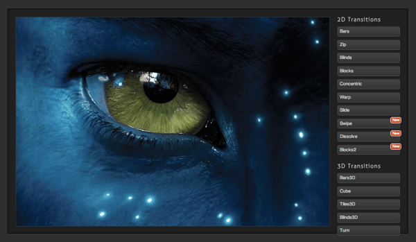 Találtam ma a hírek között egy nagyon jónak tűnő slider-t Joe Lambert-től (hardveres gyorsítás, CSS3/JS alapú, 2D és 3D képátmenet effektek), amit itt lehet megnézni: