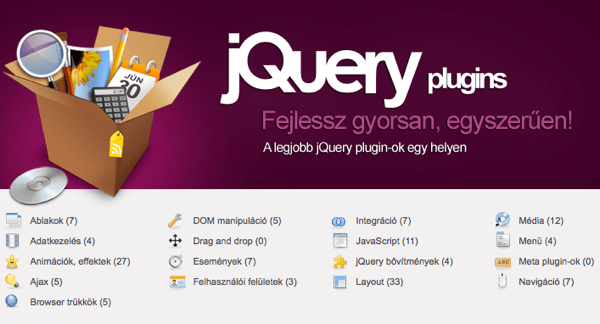 Ez egy rövid ajánló lesz, mivel ma találtam először ezzel a lappal és igencsak megtetszett: http://www.jquery-plugins.hu