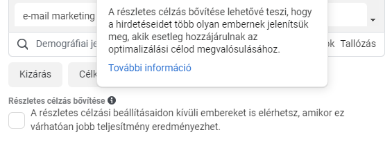 Ilyen esetekben annyit megtehetünk, hogy a beállított célzáson túl, használjuk a „Részletes célzás bővítése” lehetőséget: