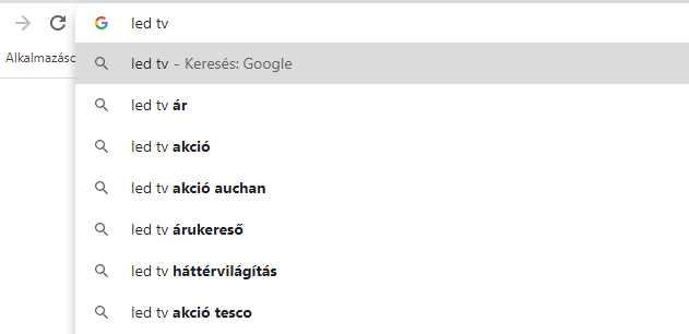 Ha a Google kereső mezőjébe elkezdjük begépelni a keresési kifejezést, az Autocomplete tool javaslatokat ad a keresendő kifejezésekre: