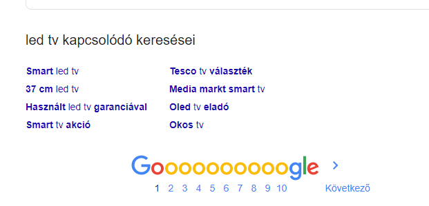 Ha beírunk egy keresőkifejezést a Google keresőbe, akkor a találati lista alján megjelennek a kapcsolódó keresések: