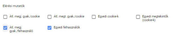 A fentiekből már az is következik, hogy az impression nem egyenlő az elért felhasználók számával. Facebook hirdetések esetén a reach (elérés) megadja a felhasználók számát, valamint találunk olyan mutatót is, hogy frequency (gyakoriság), ami megmutatja, hogy beállított időtartományban egy felhasználót átlagosan hányszor értünk el. Google Ads-ben az elérési mutatókat érdemes figyelnünk: